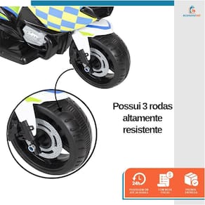 Os pequenos que adoram aventuras vão se apaixonar pela Mini Moto Elétrica da Baby Style!Especialmente projetado para o uso infantil com um visual e design moderno, conta com uma configuração esportiva que deixa os pequenos terem a sensação de pilotar uma moto de verdade.Com toda a segurança garantida é perfeito para passear em um parque, condomínio e na rua; podendo brincar tanto individualmente quanto com os amigos. A Mini moto elétrica é aprovada pelo INMETRO e foi especialmente projetada para o uso infantil com tamanho confortável e velocidades seguras para as crianças. Movida a bateria recarregável de 6V conta com 3 rodas gigantes que garante uma ótima estabilidade.O painel conta com uma central de mídia completa com entrada USB e AUX IN para MP3, ajuste de volume e das luzes, e até sons de moto. O triciclo também conta com marcha ré controlada por um botão na central de midia.- Botão de liga/desliga- Produz luz e som- Possui entrada USB para MP3 player- Ajuste de volume- Função frente e ré- Decorada com lindos adesivos- Segura e aprovada pelo INMETROCARACTERÍSTICAS TÉCNICAS:Medidas: 82cm x 45cm x 54cmSuporta até: 25kgBateria: 6V recarregávelTempo de carregamento: 8 a 12 horasVelocidade máxima: 4,2km/hIdade Recomendada: A partir de 3 anosPeso: 6,3kgMarca: Baby StyleRef.: 998549ITENS INCLUSOS• 01 Triciclo Elétrico• 01 Carregador de Bateria - Bivolt (110V/220V)• 01 Manual de instruções