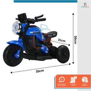 Especialmente projetado para o uso infantil com um visual e design moderno, conta com uma configuração esportiva que deixa os pequenos terem a sensação de pilotar uma moto de verdade.Com toda a segurança garantida é perfeito para passear em um parque, condomínio e na rua; podendo brincar tanto individualmente quanto com os amigos. A Mini moto elétrica é aprovada pelo INMETRO e foi especialmente projetada para o uso infantil com tamanho confortável e velocidades seguras para as crianças. Movida a bateria recarregável de 6V conta com 3 rodas gigantes que garante uma ótima estabilidade.CARACTERÍSTICAS TÉCNICAS:Medidas: 90cm x 50cm x 66cmIdade Recomendada: A partir de 3 anosPeso suportado: Até 25 kgBateria: 6V recarregávelTempo de carregamento: 8 a 12 horasVelocidade máxima: 3km/hPeso: 4,5 kgMarca: Baby StyleRef.: 998541ITENS INCLUSOS• 01 Triciclo Elétrico• 01 Carregador de Bateria - Bivolt (110V/220V)• 01 Manual de instruções