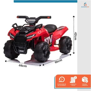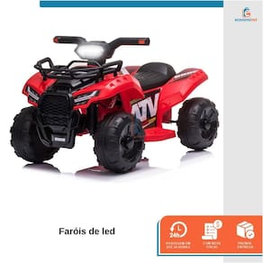 O Quadriciclo é ideal para dar aos seus filhos uma experiência de condução autêntica, para se divertir promovendo habilidades como coordenação, orientação e muito mais. Equipado com faróis e pedal de aceleração para avançar e retroceder. Possui 4 rodas largas e texturizadas, resistentes ao desgaste para garantir um passeio suave, adequado para vários tipos de solo. Basta carregar a bateria do veículo elétrico e seu filho poderá usá-la. - Faróis;- Pedal de aceleração;- Rodas largas e texturizadas;- Bateria recarregável. CARACTERÍSTICAS TÉCNICAS:Material: PP e açoMedidas: 42cm (altura) x 44cm (largura) x 66cm (comprimento)Idade recomendada: 1 a 3 anosPeso suportado: Até 20kgTempo de carregamento: 8 a 12hBateria: 6V4AHTempo de uso: 1 a 2hPeso: 6kgMarca: Baby StyleRef.: 998538