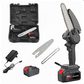 Mini motosserra 48v ideal para jardinagem Descrição do anúncio: Transforme suas atividades de jardinagem e corte com a mini serra elétrica 48v portátil bivolt. Projetada para proporcionar uma experiência ergonômica e confortável, esta motosserra é perfeita para cortes e podas em qualquer lugar, especialmente em áreas de difícil acesso. Com um motor escovado potente, garante um desempenho eficiente e rápido, minimizando o cansaço nas mãos. Ideal para serviços domésticos, jardinagem e podas simples, a mini serra elétrica oferece praticidade e mobilidade sem a necessidade de arrastar fios, graças à sua bateria inclusa.