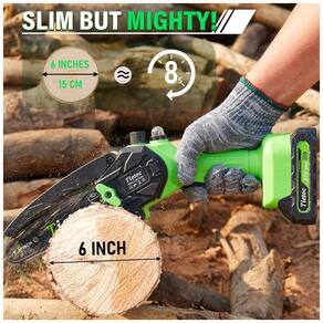 A mini motosserra Tietoc é segura e fácil de usar, com uma trava de segurança que evita a ativação acidental. Ela também vem equipada com defletores de segurança para evitar respingos na madeira, além de uma alça de textura antiderrapante que permite que você segure a mini motosserra firmemente. A mini motosserra Tietoc é feita com materiais de proteção ambiental retardantes de chamas e tem certificação profissional FCC.
