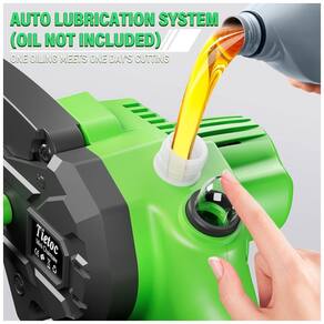 A mini motosserra sem fio é equipada com sistema de lubrificação automática da corrente, o que significa que basta despejar óleo de motor geral no tanque, e você pode lubrificar livremente a corrente pressionando, reduzindo o desgaste para um corte mais suave, mais cortes e menos uso de energia. Ela também vem com duas baterias recarregáveis removíveis de 2000mAh, o que garante que você possa terminar todos os seus cortes, mesmo no campo.