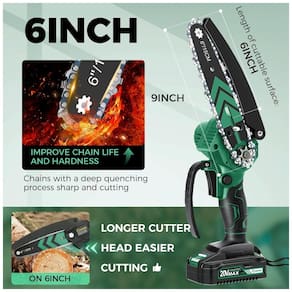Esta mini motosserra sem fio de 6 polegadas é uma ferramenta perfeita para mães, amigas, faz tudo e mulheres que gostam de trabalhar com madeira ou de organizar o quintal. Com um comprimento de face cortável de 6 polegadas e um comprimento total de chapa de aço de 9 polegadas, você pode cortar árvores mais grossas para atender melhor às suas necessidades. A mini motosserra Saker adapta uma corrente guia de alta qualidade que passou por um processo de têmpera profunda para garantir um corte suave. Além disso, usa um motor de cobre puro, que é muito potente, tornando a eficiência de corte maior e mais rápida. A mini motosserra Saker é equipada com uma bateria de lítio recarregável de 20 V 1500 mAh, que pode ser usada por um longo tempo. A mini motosserra Saker de 6 polegadas sem fio com 2 baterias pode ser carregada a qualquer momento, tornando a conveniente e rápida. Embora a mala seja pequena, ela pode armazenar todos os acessórios perfeitamente. A mini motosserra Smart Saker é uma motosserra pequena, prática, rápida e fácil de montar, levando apenas 1 minuto para toda a instalação. A motosserra Saker de 6 polegadas tem uma superfície de corte mais longa, permitindo que você corte árvores um pouco mais grossas com menos esforço, proporcionando uma melhor experiência. Esta motosserra também tem um motor de alta eficiência com fio de cobre atualizado, oferecendo à sua ferramenta maior tempo de execução, mais torque e mais potência, o que leva a menos desgaste, estendendo a vida útil da motosserra portátil Smartsaker. Se você tiver alguma dúvida sobre as motosserras elétricas, a qualquer momento, estamos sempre disponíveis.