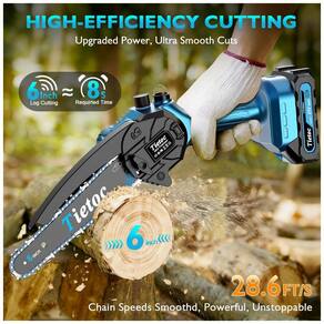 Esta mini motosserra portátil é perfeita para cortar galhos e toras de tamanho médio. É ideal para áreas apertadas onde uma motosserra maior não funcionaria. A motosserra é fácil de segurar e moldar, tornando o corte de madeira uma brisa. O lubrificador automático é uma mudança de jogo, pois a serra tem um reservatório para óleo de corrente, o que é ótimo para manter a corrente lubrificada. A serra é equipada com 2 baterias recarregáveis removíveis de 2000mAh, permitindo que você corte sem fio até mesmo no campo. A mini motosserra também vem com 5 projetos de segurança, incluindo uma trava de segurança, defletores de segurança, luvas anti corte, alça antiderrapante e óculos de proteção. Tudo isso é embalado cuidadosamente em uma caixa durável e portátil, ideal para atividades ao ar livre ou seu quintal. Esta mini motosserra é um ótimo presente de Natal para homens, mulheres, pais, amigos, DIYers, jardineiros e proprietários de casa.