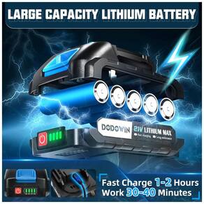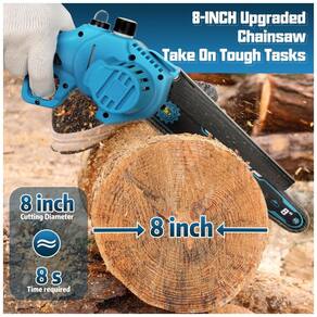 A mini motosserra sem fio DODOWIN de 20,3 cm (8 polegadas) é perfeita para tarefas de corte em quintais e fazendas. Possui sistema de lubrificação automática, trava de segurança e bateria de 21 V e 2000 mAh, garantindo operação segura e eficiente. Com motor potente de 775 W, corta toras e galhos de até 20 cm de diâmetro com facilidade.