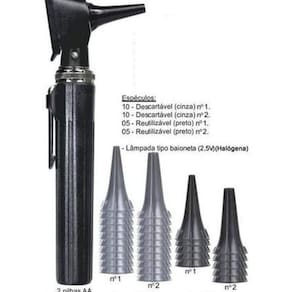 Mini Otoscopio Especulos E Estojo MikatosO Otoscópio mini Mikatos oferece um excelente custo benefício, é leve e pode ser levado no bolso.Características do produtoIndicaçõesO otoscópio mini Mikatos é específico para exames das partes internas do ouvido, possui uma lente de aumento de 2,5x para uma análise com excelente nitidez.Possibilitando ao profissional a amplitude e iluminação suficientes para um diagnóstico preciso.ComposiçãoPlastico , AlumínioDiferenciais e benefíciosTamanho reduzido e ótimo custo beneficioItens inclusosO otoscópio mini Mikatos é composto de:. Cabo com botão liga/desliga. Presilha em aço inoxidável. Cabeçote com lente acrílica de 2,5x de aumento. 05 espéculos pretos reutilizáveis nº 1 - 2,5mm. 04 espéculos pretos reutilizáveis nº 2 - 4,0mm. 10 espéculos cinzas descartáveis nº 1 - 2,5mm. 10 espéculos cinzas descartáveis nº 2 - 4,0mm. 01 lâmpada 2,5Volts. 01 estojo para acondicionamentoFuncionamento: 2 pilhas pequenas alcalinas(não incluídas)Altura do produto (cm) 16,00Largura do produto (cm) 3,00Profundidade do produto (cm) 3,00Peso líquido (Kg) 0,157Altura da embalagem (cm) 18,00Largura da embalagem (cm) 10,00Profundidade da embalagem (cm) 4,00Peso bruto com embalagem (Kg) 0,157Higiene e ConservaçãoÉ constituído de peças móveis com sistema de rosca (cabo e cabeçote) e de fácil limpezaGarantia 12 mesesRegistro ANVISA/M.S. 80218930006