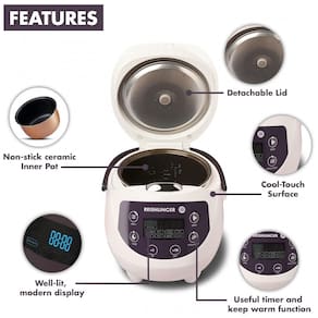 Cozimento em 7 fases, 7 modos especiais de preparo de arroz, temporizador e função manter aquecidoLâmpada piloto