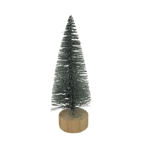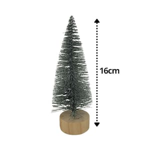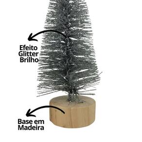 -01 Unidade Mini Pinheiro Decorativo Prata Glitter 16cm Base Madeira