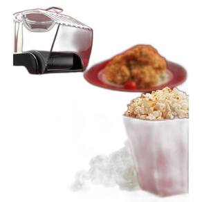 A Pipoqueira Elétrica Popcorn Maker é complementa e perfeita para a hora do filme, pois prepara pipoca para toda a família. E a pipoca ficou muito mais saudável, não precisa utilizar óleo nem gordura e possui bico direcionador e tampa dosadora, então a pipoca sai quentinha direto na tigela. Ela prepara até 100g de pipoca com ar quente em aproximadamente 3,5 minutos. Sua tampa dosadora auxilia a medir a quantidade de pipoca e ainda derrete a manteiga para deixar sua pipoca mais gostosa. Prática, rápida, basta colocar o milho e em poucos minutos a pipoca está pronta para servir.
