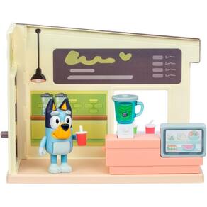 -Com este cenário encantador, as crianças podem ajudar a Bluey a escolher seu suco favorito enquanto se divertem com acessórios superfofos como balcão, copos e um liquidificador.