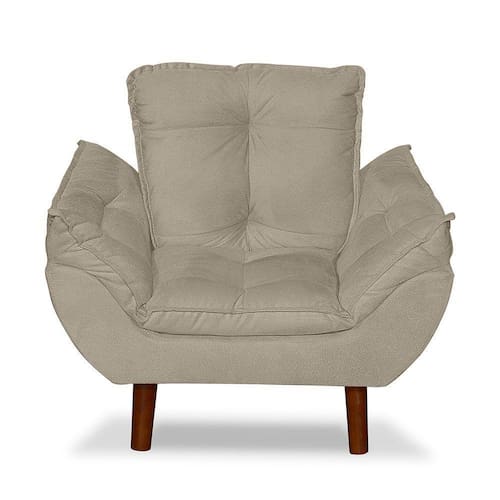 Mini Poltrona Cadeira Infantil De Criança Suede Bege Pés Palito