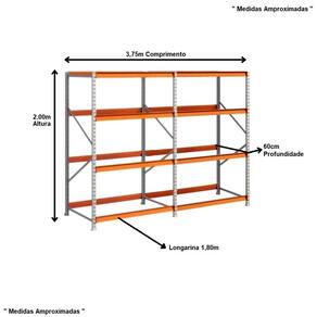 Mini Porta Pallet 1500kg Por Nível 1 Inicial 1 Continuação 3,75m Comprimento 2,00m x 1,80m x 60cm 4 Níveis - Amapá O Mini Porta Pallet é produzido em aço resistente, com capacidade de 187,50kg por nível e reforço nas laterais é indicado para depósitos, estoques e exposição, como: pet shops, oficinas, lojas de materiais de construção e mini atacarejos. Prático e versátil dispensa o uso de empilhadeiras, onde as mercadorias são depositadas e retiradas manualmente. Além disso, é de fácil montagem, com a simples colocação de porcas e parafusos, unindo as longarinas às colunas. A pintura dos produtos é feita por meio da técnica eletrostática, com tratamento anticorrosão uniforme e resistente. Os Mini Porta Pallets possuem qualidade, resistência e durabilidade garantidas pelo uso de matérias-primas de alto padrão, processos produtivos com a mais alta tecnologia do mercado e um cuidado especial em cada etapa de produção. Dimensões Aproximadas Altura: 2,00mProfundidade: 0,60mComprimento Longarina: 1,80m Comprimento Montada: 3,75m " Medida Aproximada " Características Material: AçoMarca: AmapáCor: Cinza/LaranjaCapacidade por Nível: 187,50kgCapacidade Total Montada: 1500kgFornecedor: Mixmob Instalações Comerciais Kit Composto: Mpp 250kg INICIAL e CONTINUAÇÃO 3 Níveis Com Inclusão de 2 Pares de Longarinas Contém 03 Laterais 2,00m x 0,60m - Amapá08 Pares Longarinas 1,80m x 0,60m - Amapá Entrega Via TransportadoraPrazo: Consulte pelo CEP com nossos vendedores Garantia Contra Defeitos de Fabricação: 12 meses DevoluçãoEm até 7 dias após a chegada do produto, você tem o direito de realizar a devolução. Mas para isso, a mercadoria não deve ter sido montada, utilizada e danificada.Horário de AtendimentoSegunda a Sexta-feira, das 13:00h às 17:00h.Dúvidas, Informações, Consulte Nossos Vendedores Via WhatsApp.\nFicha Técnica\nCódigo MPP004\nModelo Linha Mini Porta Pallet 250kg\nCategoria Mini Porta Pallet Amapá\nMarca Amapá Metalúrgica\nItens Inclusos 03 Laterais 2,00m x 0,60m - Amapá08 Pares Longarinas 1,80m x 0,60m - Amapá\nGarantia 1 ano após o recebimento do produto\nDisponibilidade Disponível em 2 dias úteis\nInformação adicional Dúvidas, Consulte Nossos Vendedores Via WhatsApp.