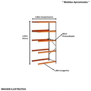 Mini Porta Pallet 250kg - Continuação 2,00m x 1,80m x 0,60cm Com 5 Níveis Amapá O Mini Porta Pallet é produzido em aço resistente, com capacidade de 150,00kg por nível e reforço nas laterais é indicado para depósitos, estoques e exposição, como: pet shops, oficinas, lojas de materiais de construção e mini atacarejos, processos produtivos com a mais alta tecnologia do mercado e um cuidado especial em cada etapa de produção Prático e versátil dispensa o uso de empilhadeiras, onde as mercadorias são depositadas e retiradas manualmente. Além disso, é de fácil montagem, com a simples colocação de porcas e parafusos, unindo as longarinas às colunas. A pintura dos produtos é feita por meio da técnica eletrostática, com tratamento anticorrosão uniforme e resistente. A Fileira de Mini Porta Pallets deve ser iniciada com o Mini Porta Pallet INICIAL que possui 2 colunas. O Mini Porta Pallet CONTINUAÇÃO possui 1 coluna, utilizada para dar continuidade à fileira e não pode ser montada individualmente. Dimensões Aproximadas Altura: 2,00mProfundidade: 0,60mComprimento Longarina: 1,80m Comprimento Montado: 1,85 " Medida Aproximada " Características Material: AçoMarca: AmapáCor: Cinza/LaranjaCapacidade por Nível: 150,00kgCapacidade Total Por Modulo: 750kgFornecedor: Mixmob Instalações Comerciais Modelo: Mini Porta Pallets 250kg 3 Níveis com Inclusão de 2 Pares de Longarinas. Mini Porta Pallet Continuação possui 01 lateral, utilizado para dar continuidade à fileira e não pode ser montado individualmente. Contém 01 Lateral 2,00m x 0,60m - Amapá05 Pares Longarinas Laranja 1,80m x 0,60m - Amapá Observações:Linha Mini Porta Pallets 250kg Amapá.Imagen inlustrativa para melhor identicação do produto montado. Entrega Via: TransportadoraPrazo: Consulte pelo CEP com nossos vendedores Garantia Contra Defeitos de Fabricação: 12 meses DevoluçãoEm até 7 dias após a chegada do produto, você tem o direito de realizar a devolução. Mas para isso, a mercadoria não deve ter sido montada, utilizada e danificada.Horário de AtendimentoSegunda a Sexta-feira, das 13:00h às 17:00h.Dúvidas, Informações, Consulte Nossos Vendedores Via WhatsApp.\nFicha Técnica\nCódigo AMP0621\nModelo Linha Mini Porta Pallet 250kg\nCategoria Mini Porta Pallet Amapá\nMarca Amapá Metalúrgica\nItens Inclusos 01 Lateral 2,00m x 0,60m - Amapá05 Pares Longarinas Laranja 1,80m x 0,60m - Amapá\nGarantia 1 ano após o recebimento do produto\nDisponibilidade Disponível em 2 dias úteis\nInformação adicional Dúvidas, Consulte Nossos Vendedores Via WhatsApp.