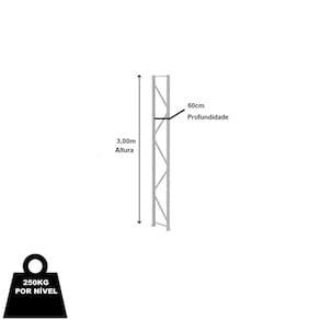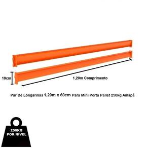 KIT Mini Porta Pallet 250kg Continuação 3,00m Altura x 1,20m Comprimento x 60cm Profundidade - 4 Níveis Amapá O Mini Porta Pallet é produzido em aço resistente, com capacidade de 250kg por Nível e reforço nas laterais é indicado para depósitos, estoques e exposição, como: pet shops, oficinas, lojas de materiais de construção e mini atacarejos. Prático e versátil dispensa o uso de empilhadeiras, onde as mercadorias são depositadas e retiradas manualmente. Além disso, é de fácil montagem, com a simples colocação de porcas e parafusos, unindo as longarinas às colunas. A pintura dos produtos é feita por meio da técnica eletrostática, com tratamento anticorrosão uniforme e resistente. Os Mini Porta Pallets possuem qualidade, resistência e durabilidade garantidas pelo uso de matérias-primas de alto padrão, processos produtivos com a mais alta tecnologia do mercado e um cuidado especial em cada etapa de produção.A Fileira de Mini Porta Pallets deve ser iniciada com o Mini Porta Pallet INICIAL que possui 2 colunas. O Mini Porta Pallet CONTINUAÇÃO possui 1 coluna, utilizada para dar continuidade à fileira e não pode ser montada individualmente. Dimensões Aproximadas Altura: 3,00mProfundidade: 0,60mComprimento Longarina: 1,20mComprimento Total: 1,25m " Medida Aproximada "Características Material: AçoMarca: AmapáCor: Cinza/LaranjaCapacidade Por Nível. 250kgCapacidade Peso Total 1000kgContém 01 Laterais 3,00m x 0,60m - Amapá04 Pares Longarinas 250kg 1,20m x 0,60m - Amapá Entrega Via: TransportadoraPrazo: Consulte pelo CEP com nossos vendedores Garantia Contra Defeitos de Fabricação: 12 meses DevoluçãoEm até 7 dias após a chegada do produto, você tem o direito de realizar a devolução. Mas para isso, a mercadoria não deve ter sido montada, utilizada e danificada.Horário de AtendimentoSegunda a Sexta-feira, das 13:00h às 17:00h.Dúvidas, Informações, Consulte Nossos Vendedores Via WhatsApp.\nFicha Técnica\nCódigo AMP0639\nModelo Linha Mini Porta Pallet 250kg\nCategoria Mini Porta Pallet Amapá\nMarca Amapá Metalúrgica\nItens Inclusos 01 Laterais 3,00m x 0,60m - Amapá04 Pares Longarinas 250kg 1,20m x 0,60m - Amapá\nGarantia 1 ano após o recebimento do produto\nDisponibilidade Disponível em 30 dias úteis
