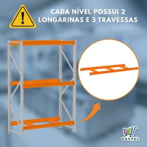Prático e versátil, além de ser de fácil montagem. Dispensa o uso de empilhadeiras, onde as mercadorias são depositadas e retiradas manualmente dos planos. Produzido em aço resistente, com capacidade de 500kg por nível e reforço nas laterais é indicado para depósitos, estoques e exposição, como: pet shops, oficinas, lojas de materiais de construção e mini atacarejos.