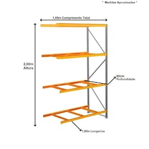 Mini Porta Pallet 1500Kg CONTINUAÇÃO 2,00m x 1,80m x 80cm O Mini Porta Pallet Amapá é produzido em aço resistente, com capacidade de 375kg por nível e reforço nas laterais é indicado para depósitos, estoques e exposição, como: pet shops, oficinas, lojas de materiais de construção e mini atacarejos, processos produtivos com a mais alta tecnologia do mercado e um cuidado especial em cada etapa de produção\nPrático e versátil dispensa o uso de empilhadeiras, onde as mercadorias são depositadas e retiradas manualmente. Além disso, é de fácil montagem, com a simples colocação de porcas e parafusos, unindo as longarinas às colunas. A pintura dos produtos é feita por meio da técnica eletrostática, com tratamento anticorrosão uniforme e resistente. A Fileira de Mini Porta Pallets deve ser iniciada com o Mini Porta Pallet INICIAL que possui 2 colunas. O Mini Porta Pallet CONTINUAÇÃO possui 1 coluna, utilizada para dar continuidade à fileira e não pode ser montada individualmente. Dimensões Aproximadas Altura: 2,00mProfundidade: 0,80mComprimento Longarina: 1,80m Comprimento Montada: 1,85m " Medida Aproximada " Características Material: AçoMarca: AmapáCor: Cinza/LaranjaModelo: Mpp 500kg AmapáCapacidade Peso Por Nível: 375kgCapacidade Peso Total Suportado: 1500kgFornecedor: Mixmob Instalações Comerciais Mini Porta Pallets 500kg 3 Níveis com Inclusão de 1 Par de Longarinas. Mini Porta Pallet 500kg CONTINUAÇÃO possui 01 Lateral, utilizada para dar CONTINUIDADE à Fileira e NÃO pode ser montada individualmente. Contém 01 Laterais 2,00m x 80cm - Amapá04 Pares Longarinas 1,80m x 0,80m - Amapá.Entrega Via: TransportadoraPrazo: Consulte pelo CEP com nossos vendedores Garantia Contra Defeitos de Fabricação: 12 meses DevoluçãoEm até 7 dias após a chegada do produto, você tem o direito de realizar a devolução. Mas para isso, a mercadoria não deve ter sido montada, utilizada e danificada.Horário de AtendimentoSegunda a Sexta-feira, das 13:00h às 17:00h.Dúvidas, Informações, Consulte Nossos Vendedores Via WhatsApp.\nFicha Técnica\nCódigo 1321\nModelo Linha Mini Porta Pallet 500kg\nCategoria Mini Porta Pallet Amapá\nMarca Amapá Metalúrgica\nItens Inclusos 01 Laterais 2,00m x 80cm - Amapá04 Pares Longarinas 1,80m x 0,80m - Amapá\nGarantia 1 ano após o recebimento do produto\nDisponibilidade Disponível em 2 dias úteis\nInformação adicional Dúvidas, Consulte Nossos Vendedores Via WhatsApp.