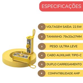 Carregador portátil com capacidade de 5000mAh e potência de 22.5wAcabamento do material