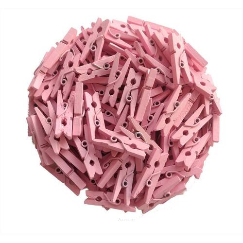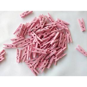 Mini Pregador De Madeira Rosa Com 100 Unidades 25Mm