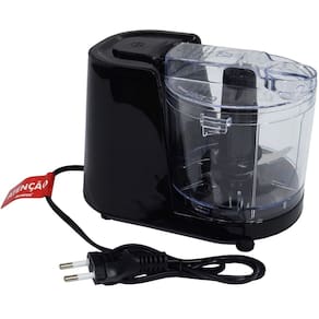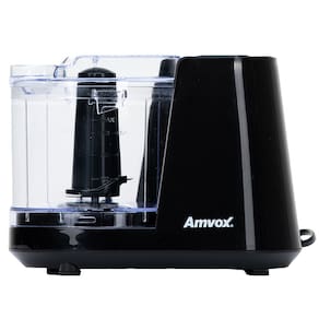 Mini processador Amvox APR 1001 Black, 100W, ideal para picar, moer e triturar frutas, verduras e legumes. Possui copo de 350ml, lâmina removível e pés antiderrapantes.Porta-fio