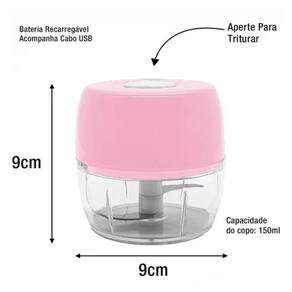 Produto de altíssima qualidade e facilita na hora de triturar seus alimentos. Pode ser utilizado para triturar todos os tipos de alimentos como verduras, alho, cebola, pimentas, temperos. Também é muito útil na hora de fazer papinha e molhos. Possui 2 lâminas em aço inox removível, facilitando na hora de lavar e não necessita de fios ou tomada. Basta deixá-lo carregado anteriormente que poderá utilizar em qualquer lugar.
