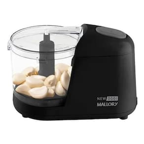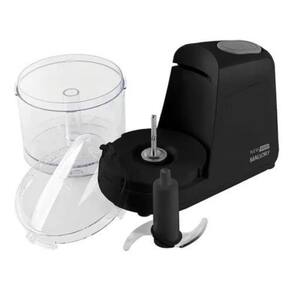 Mini processador Mallory New Oggi preto com 150W de potência e capacidade de 350ml. Ideal para processar, cortar, triturar e moer alimentos.Acessórios