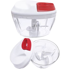 Este versátil utensílio é o seu parceiro ideal para preparar todos os tipos de legumes e temperos com facilidade e rapidez. Equipado com 3 lâminas giratórias em aço inoxidável, este Miniprocessador oferece uma experiência de preparo de alimentos manual como nenhuma outra. Basta acionar a corda retrátil e ver a mágica acontecer! Adeus bagunça e dificuldades no preparo dos seus alimentos! Com o Miniprocessador Manual, você processa e tritura ingredientes de forma muito mais fácil, rápida e eficaz. Ele simplifica e agiliza os processos na sua cozinha, economizando seu tempo precioso.