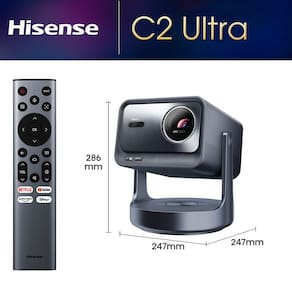 Prepare-se para a sua noite de cinema em casa! O mini projetor a laser C2 Ultra 4K da Hisense é o nosso modelo Imagem :: Aprimoramento de imagem -4K Upscaling, Colorimetria 10 bit, HDR, HDR10, HLG, HDR10+ , Dolby Vision, Modo FILMMAKER :: Certificações - IMAX Enhanced, XBOX :: Outros - MeMC 120Hz, ALLM, Game Bar