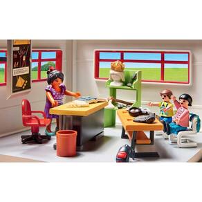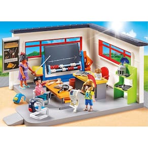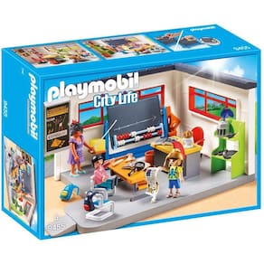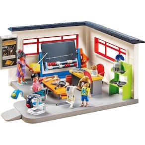 Há muito o que aprender na aula de história! Descubra como as culturas e os países se desenvolveram! Descubra como inventores, líderes e exploradores provocaram mudanças na tecnologia, na ciência e na política! Os artefatos antigos e os textos históricos ajudarão você a absorver tudo. Use o quadro-negro de dupla face para escrever as aulas e, quando a aula terminar, lave-a com a esponja pequena. Anexe este conjunto ao prédio escolar mobiliado (#9453 — vendido separadamente) para se divertir ainda mais, ou crie uma cena escolar completa com o restante do tema escolar PLAYMOBIL (#9453 -9457 — vendido separadamente). O conjunto inclui uma figura adulta, duas figuras infantis, estrutura da sala de aula, quadro negro funcional com ábaco, mesas, cadeiras, coroa, capacetes de cavaleiro, livros de história, ponteiro, compartimentos de armazenamento, régua, artefatos e muitos outros acessórios. Dimensões: 11,4 x 9,4 x 5,5 polegadas (CxLxA). Recomendado para maiores de cinco anos. Advertência. PERIGO DE ASFIXIA. Peças pequenas. Não é para crianças menores de 3 anos.