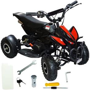 Com o Mini Quadriciclo 49CC a criançada vai se divertir como nunca! Com motor 2 Tempos de 49CC ela permite uma experiência única e verdadeira para as crianças com velocidade máxima de 40 km/h. É recomendada para crianças a partir dos 4 anos e que pesem até 60 kg. Conta com freio a disco nas duas rodas, pneus para qualquer tipo de solo e tanque para até 2 litros de combustível. Apresenta design inovador e é uma verdadeira máquina para qualquer tipo de solo como asfalto ou terra e que torna a brincadeira cheia de aventura.