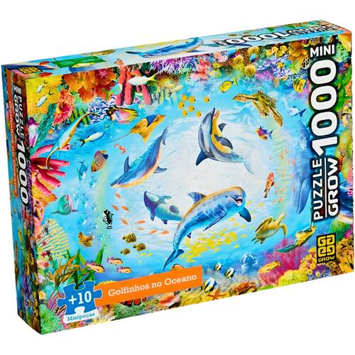 Descrição do produto : Mergulhe em uma aventura submarina com o Mini Quebra-Cabeça "Golfinhos no Oceano"! Com 1000 peças, este quebra-cabeça traz uma linda ilustração de golfinhos interagindo com uma variedade de animais marinhos e vibrantes corais. Ideal para crianças a partir de 10 anos, oferece horas de diversão e aprendizado sobre a vida marinha. Ao final, você terá uma bela imagem com dimensões aproximadas de 44 x 30 cm, perfeita para emoldurar e exibir. Desafie sua mente e aproveite momentos de tranquilidade com este encantador quebra-cabeça! : Detalhes técnicos : Marca: Grow : Referência: 04607 : Idade recomendada: 10 : Possui Luzes: Não : Possui Sons: Não : Dimensões aproximadas da embalagem: 24,9 x 17,9 x 4,5 cm (A x L x C) : Ean: 7908010146066 : Tamanho da Imagem : 44 x 30 cm : Componentes : 1 quebra-cabeça com 1000 peças :