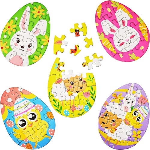 Estes quebra-cabeças são caracterizados pela forma de ovos de Páscoa, coloridos impressos com padrões de animais fofos como coelho, frango, ovelha e muito mais, parecem engraçados e adoráveis, cheios de toque de Páscoa, para que possam ser uma boa ajuda para sua festa de Páscoa.