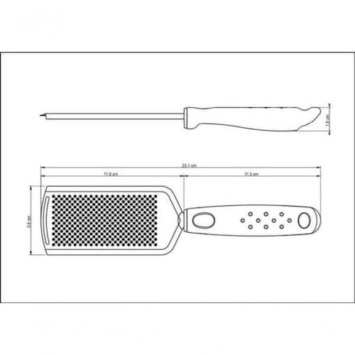 - Lâmina com dentes em escala maior, para melhor eficácia no manuseio.- Cabo com detalhe de apoio, proporcionando maior firmeza e ao manusear a peça.- Cabo em polipropileno. com furo passante para pendurar o utensílio.- Design moderno e Cores diferenciadas.- Permanece bonito por muito mais tempo.