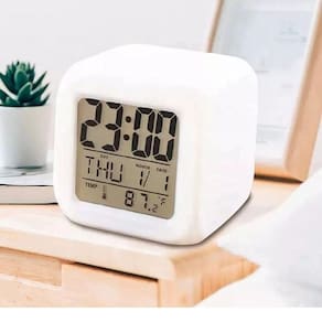 Mini Relógio Despertador Digital Branco Um item indispensável para quem busca praticidade, tecnologia e um toque de estilo no dia a dia. Com um design compacto, elegante e inteligente, ele é perfeito para ser no quarto, escritório, sala ou até mesmo em ambientes estudantis. Seu display digital em LED oferece excelente visibilidade, com iluminação colorida que muda automaticamente por ciclos ou com um simples toque, criando um ambiente mais agradável e personalizado. Além disso, o relógio conta com diversas funcionalidades integradas: marca as horas com precisão, exibe a data completa, o dia da semana e a temperatura ambiente, ideal para manter você sempre bem informado. Possui ainda a útil função soneca, permitindo alguns minutinhos extras de descanso antes de começar o dia. Simples de usar e altamente eficiente, o despertador funciona com 3 pilhas AAA (não inclusas) e é fabricado com materiais de qualidade como plástico resistente e componentes eletrônicos duráveis Especificações: Dimensões: 8cm altura x 8cm largura x 8cm comprimento Composição: Plástico, Vidro e Componentes Eletrônicos Alimentação: 3 Pilhas AAA (não inclusas) Peso: 88g Cor: Branca