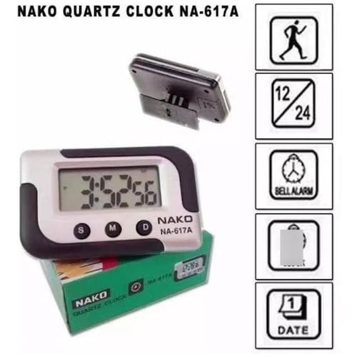 Mini Despertador Nako Digital com Cronômetro Prateado Na-617a Mini despertador de mesa com design simples e moderno, mostra data, hora e possui alarme programável. Especificações: Marca: Nako Cor: Cinza Modelo: 617A Tamanho: 7cm x 4,5cm x 2,7cm Itens Inclusos: - 01 Relogio despertador Marca: Nako