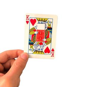 Na rotina principal, você mostra um rei segurando um mini baralho na mã espectador escolhe uma carta, aí você deixa a MAGIA agir. A carta escolhida sai do baralho do rei!É incrível e muito bem pensado.