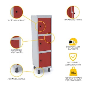 Aqui se vende móveis utilitários e também se vende elegância, design e inovação. Um exemplo? Este mini roupeiro de aço da Pandin. Com três portas, nas cores cinza e vermelho, ele possui pitão para cadeado e cabe em todo tipo de ambiente, inclusive aqueles que precisam seguir normas específicas de segurança e higiene. Este mini roupeiro tem muitas funcionalidades: pode ser utilizado em indústrias ou colocado na recepção de empresas, lojas, academias, laboratórios, condomínios, clínicas ou qualquer tipo de espaço que necessita de um armário coletivo para armazenar os pertences de seus colaboradores, clientes ou usuários. Este mini roupeiro tem a qualidade Pandin, que confecciona peças de aço resistentes, duráveis e seguras, ideais para quem precisa organizar o dia a dia com segurança e praticidade. A variedade de dimensões, formatos e divisões internas dos roupeiros da Pandin proporciona diferentes formatos e usos. Para deixar seu projeto de decoração ainda mais bonito, veja também os arquivos, armários e estantes de aço da marca.