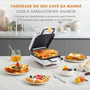 Com potência de 600W, prepara sanduíches, pães tostados e até grelhados leves em poucos minutos, tornando-se uma aliada perfeita para cafés da manhã, lanches rápidos ou refeições práticas.