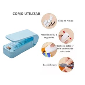 Possui um sistema de selagem rápida e prática, basta pressione e segurar máquina de selagem por cerca de 5 segundos para deixar a cabeça de aquecimento aquecer, aí é só deslizar a máquina por toda a extensão da embalagem que deseja lacrar. Em embalagens mais finas, deve deslizar a seladora mais rápido. Em embalagens mais grossas mais devagar. Pronto é só armazenar agora, prática e útil para levar com você na bolsa