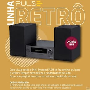 Como visual retrô o Mini System CD Player Cash Pulse 2.2 Canais 250w Bluetooth é para você que quer reviver os bons e velhos tempos e tirar sua coleção de CD’s da gaveta e curtir com qualidade e uma alta fidelidade de som.