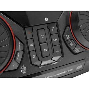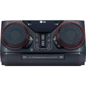 Marca: lg Modelo: xboom ck43 Cor: preto Conectividade: bluetooth, sim apenas Bluetooth Formatos de Áudio: MP3 - WMA - AAC Interface: 2x usb - cd - aux 3.5mm Rádio: fm Alto-falante: 2x 150w rms Voltagem: 110/220v - 50/60hz Dimensões do produto: LAP 300163241 mm unidade principal Peso: 2,600 Kgs LAP 201306216 mm cada coluna Peso: 2,400 kgs cada coluna