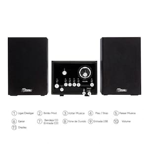 O Mini System também é incrivelmente versátil. Ele roda CDs e MP3s, permitindo que você desfrute de sua coleção de música da maneira que preferir. E com várias opções de conectividade como Rádio e até Bluetooth, você pode sincronizar seus dispositivos favoritos para uma experiência de audição personalizada.