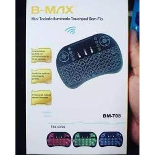 Mini Teclado Iluminado Touchpad Sem Fio Pc Tv Bm-T08 B-Max O Mini Teclado Iluminado Touchpad Sem Fio Bm-T08 B-Max é perfeito para quem busca praticidade e ergonomia. Com um design compacto e confortável, ele é ideal para uso prolongado sem cansar as mãos. Além disso, é facilmente transportável, podendo ser levado para qualquer lugar. Esse mini teclado possui iluminação, permitindo ao usuário escolher entre as cores vermelho, azul e verde. Basta pressionar o botão fn e apertar o botão f2 para trocar a cor dos leds. Com 92 teclas, incluindo comandos multimídias e teclas de controle para jogos, ele oferece uma experiência completa no uso do computador. O touchpad embutido é altamente sensível e possui rolagem 360, tornando-o perfeito para uso em vídeo games, como Xbox 360, Xbox One, PS3 e PS4, além de ser compatível com , notebook, PC e televisão. Ele é compatível com os sistemas operacionais Windows 2000/XP/Vista/7, CE e Linux. Especificações técnicas: - Design ergonômico e compacto - Bateria de lítio recarregável via cabo USB - Iluminação com opção de troca de cores vermelho, azul e verde - 92 teclas, incluindo comandos multimídias e teclas de controle para jogos - Touchpad embutido altamente sensível com rolagem 360 - Compatível com Xbox 360, Xbox One, PS3, PS4, , notebook, PC e televisão - Sistemas operacionais compatíveis: Windows 2000/XP/Vista/7, CE e Linux - Homologação Anatel: 001001903229