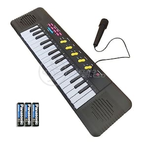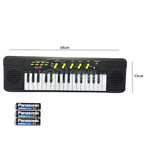 O teclado musical infantil Barcelona é uma ótima opção para presentear uma criança e proporcionará aos usuários divertidos momentos de entretenimento aliado aos estímulos à sensibilidade auditiva e a iniciação musical, ideal para aprendizagem da criança. Produto possui 32 teclas, 15 músicas programadas e com microfone que auxilia ainda mais na diversão. O mesmo reproduz o áudio falando no microfone que acompanha no produto. Caracteristicas• Tamanho Aproximado: 46cm x 13cm x 3cm• Peso Aproximado: 0,400 grams• Alimentação: 3 pilhas não inclusas• Composição: Plástico e Componentes Eletrônicos Faixa Etária Indicado para crianças a partir de 3 anos IMAGENS MERAMENTE ILUSTRATIVAS Itens Inclusos -1 Mini Teclado -1 Mini Microfone Marca: Draik