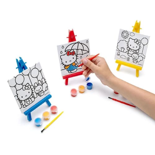 Mini Tela de Pintura com Cavalete Hello Kitty - com 1 Cavalete + 1 Tela + 3 guaches FICHA TÉCNICA:1 Mini Tela1 Cavalete3 Guaches1 PincelComposição Tela: 50% algodão, 50% nylon e placa de MDFComposição Tinta Guache: Com 3ml cada, Resinas, água, pigmentos, carga e conservantesComposição Cavalete: PolipropilenoComposição Pincel: Corpo em poliestireno e cerdas de nylonPossui Certificado INMETRO Medidas da embalagem: 14cm x 20cmMedidas do quadrinho: 9,2cm x 9,2cm Marca: Não Informado Ean: 7897256293637