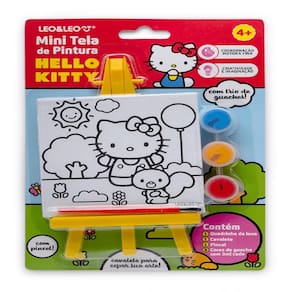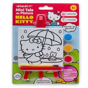 Mini Tela de Pintura com Cavalete Hello Kitty - com 1 Cavalete + 1 Tela + 3 guaches FICHA TÉCNICA:1 Mini Tela1 Cavalete3 Guaches1 PincelComposição Tela: 50% algodão, 50% nylon e placa de MDFComposição Tinta Guache: Com 3ml cada, Resinas, água, pigmentos, carga e conservantesComposição Cavalete: PolipropilenoComposição Pincel: Corpo em poliestireno e cerdas de nylonPossui Certificado INMETRO Medidas da embalagem: 14cm x 20cmMedidas do quadrinho: 9,2cm x 9,2cm