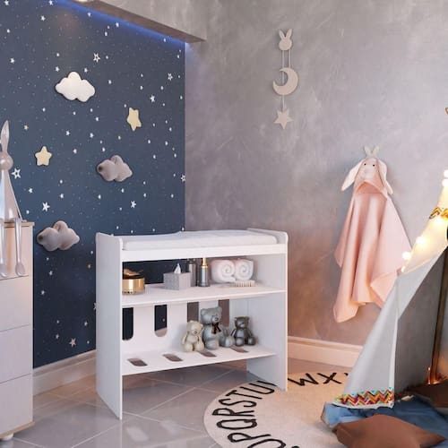 Compacto, funcional e moderno? O Trocador Moisés - MóveisAqui é o móvel perfeito para os espaços pequenos, proporciona segurança e conforto na hora de vestir e cuidar dos seus babys. Além de poder se transforma em mini-berço e escrivaninha, em outra configuração de montagem.