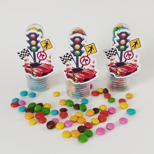 Mini Tubete de 8cm Decorado Tema Carros Trânsito