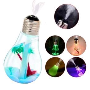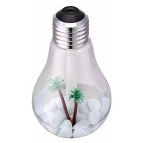 Umidificador aromatizador de ar e Luminária em formato de lampada, com uma pequena praia dentro.