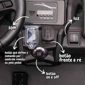 Com o UTV quadriciclo elétrico Can Am Maverick Importway a diversão está garantida! Ele pode ser controlado pela criança por meio de acionamento via pedal, ou pelo responsável através do controle remoto, além de possuir bateria recarregável de 24V. Ideal para crianças a partir de 3 anos, possui 2 assentos com cinto de segurança, atinge velocidade máxima de 8km/h e possui som e luzes.