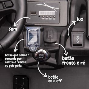 Com o UTV quadriciclo elétrico Can Am Maverick Importway a diversão está garantida! Ele pode ser controlado pela criança por meio de acionamento via pedal, ou pelo responsável através do controle remoto, além de possuir bateria recarregável de 24V. Ideal para crianças a partir de 3 anos, possui 2 assentos com cinto de segurança, atinge velocidade máxima de 8km/h e possui som e luzes.